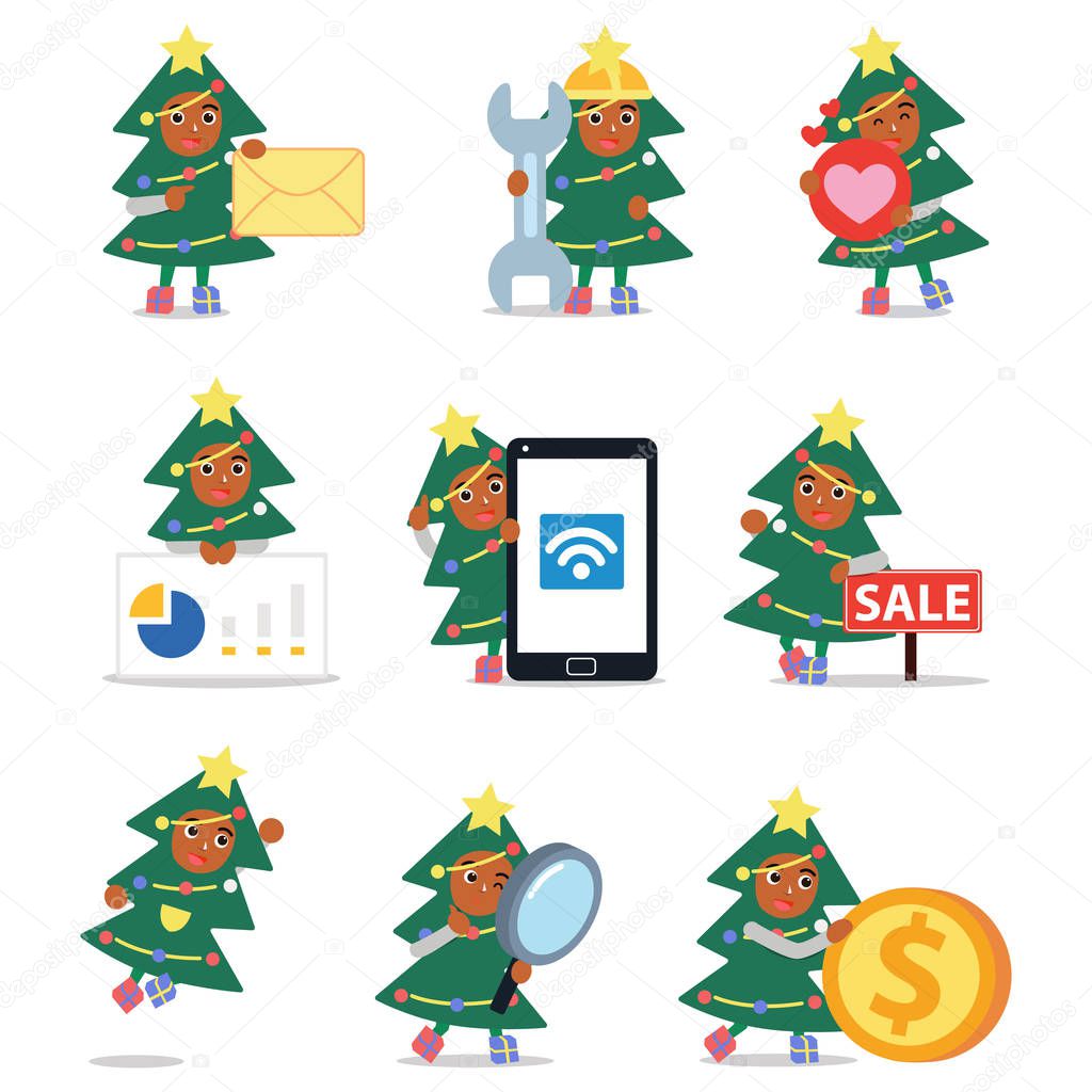 Set Of Man Character With Christmas Tree Decorations Vector Illustration With Coin Envelope Love Mobile Premium Vector In Adobe Illustrator Ai Ai Format Encapsulated Postscript Eps Eps Format