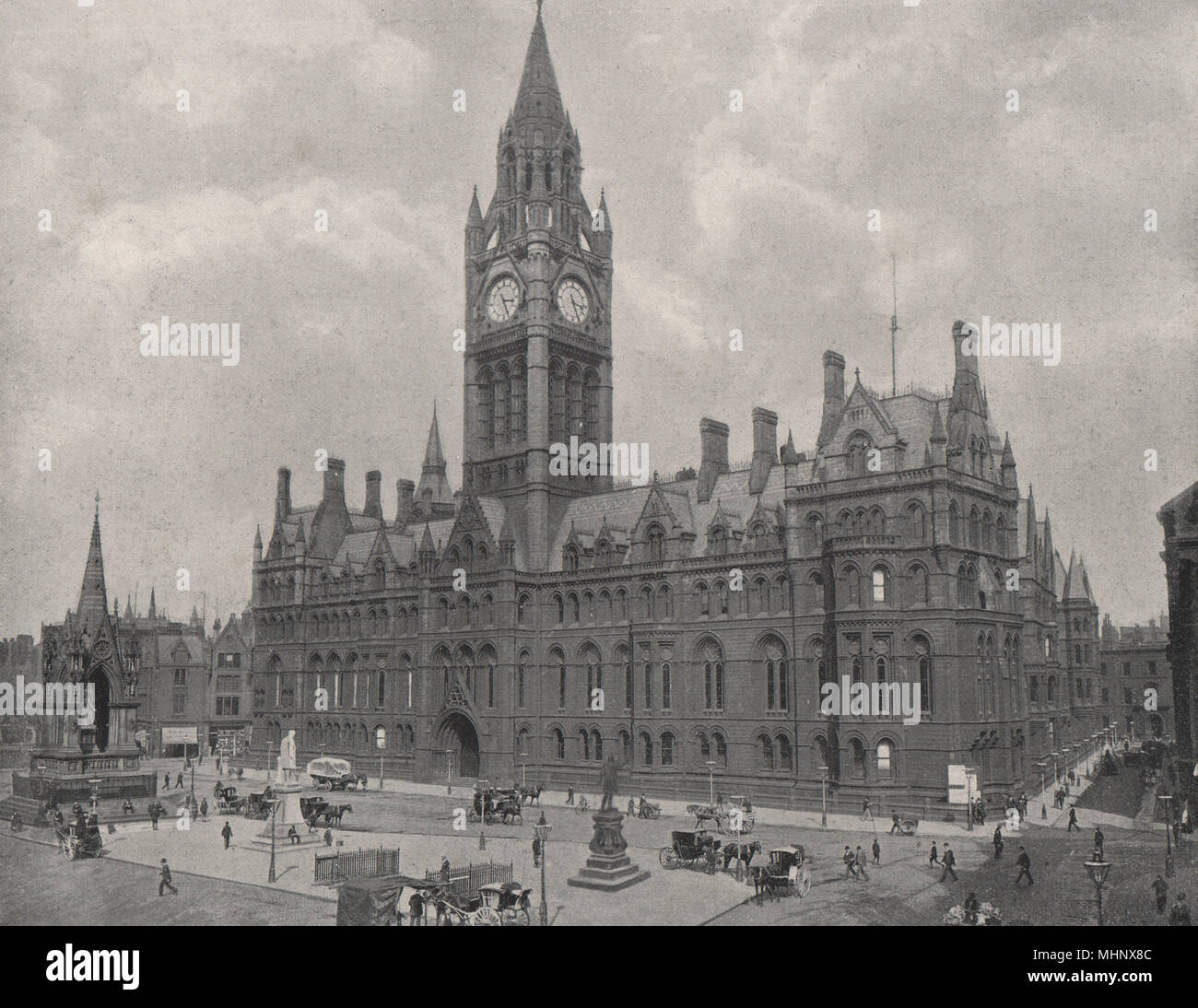 Manchester Town Hall Busy Scene 1900 Old Antique Vintage Print Picture Stock Photo Alamy