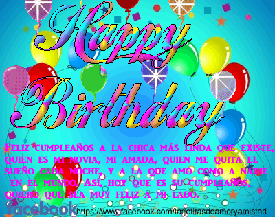 18sep19 Explora el tablero de Dessiret Valls "Amor de mi vida" en Ver más ideas sobre mensaje de feliz cumpleaños, imagenes feliz cumpleaños amigo, mensaje de cumpleaños amiga. 07sep Explora el tablero "Gif animados cumpleaños" de Mónica Saldivar Morales, que 239 personas siguen en Ver más ideas sobre feliz cumpleaños animado, cumpleaños gracioso, imagenes feliz cumpleaños graciosas. Mi mente está contigo deseándote que seas feliz y que hagas un espacio pronto para mí, con eso me conformo ¡Feliz cumpleaños mi amor desde la distancia!.