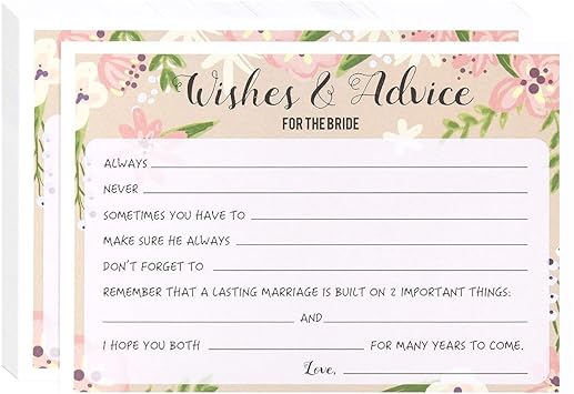 Amazon Com 50 Tarjetas De Asesoramiento Para Bodas Consejos Y Buenos Deseos Consejos Para La Novia Y El Novio Libro De Invitados Alternativo Idea Unica De Boda Y Actividad De Ducha De Novia
