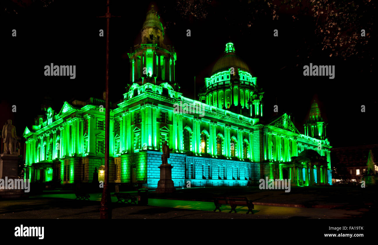 Belfast City Hall Lit Green For Irish Football Achievements Stock Photo Alamy