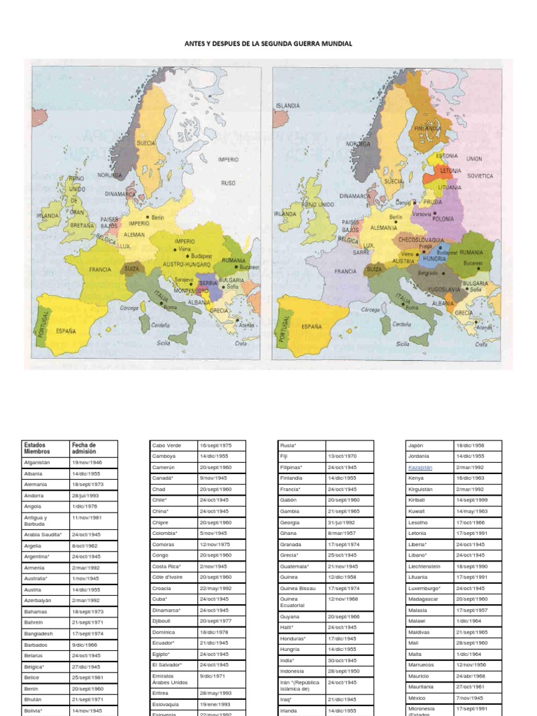 Por el contrario, después de cuatro años de guerra la posición de la monarquía había quedado en una situación muy precaria, como también ocurría con los políticos del período anterior a la guerra El 11 de noviembre tuvieron lugar las primeras elecciones yugoslavas de la posguerra, tal y como se hubiera acordado meses antes. ANTES Y DESPUES DE LA SEGUNDA GUERRA MUNDIAL Estados Miembros Fecha de admisin Afganistn 19/nov/1946 Albania 14/dic/1955 Alemania 18/sept/1973 Andorra 28/jul/1993 Angola. Europa El desmoronamiento de Yugoslavia y sus consecuencias geopolíticas Yugoslavia fue el único Estado en Europa, que durante la Guerra Fría optó por un camino entre los bloques.