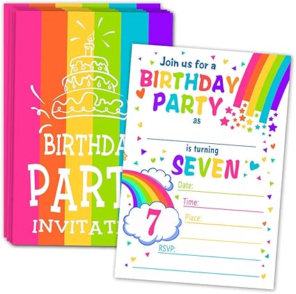 Amazon Com Invitaciones Para Fiesta De Cumpleanos De Arco Iris Para Fiesta De 7 Cumpleanos Invitacion Colorida Con Sobres Para Fiesta De Cumpleanos De Ninos Tarjetas Con Sobres Toys Games