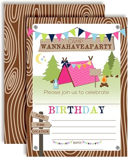 Amazon Com Amandacreation Invitaciones Para Fiestas De Cumpleanos De Camping 10 Tarjetas De 5 0 X 7 0 In Con 10 Sobres Blancos Toys Games