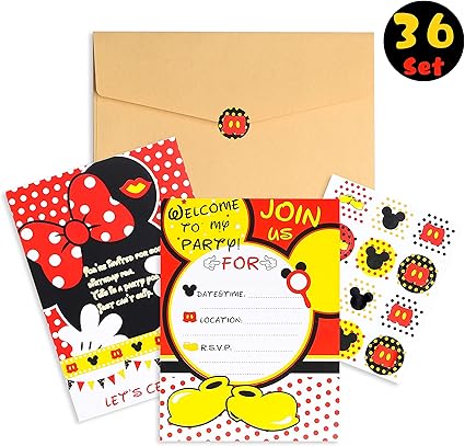Amazon Com Tarjetas De Invitacion Para Fiesta De Cumpleanos De Mickey Minnie Mouse De Pantide 36 Unidades Con Sobres Y Pegatinas De Mickey Mouse 5 90 X 4 30 Pulgadas Impresion De Doble Cara Rellenar