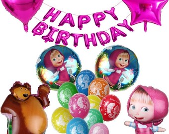 Masha Y El Oso Colorido Globos Set Para Cumpleanos 2 Anos Feliz Cumpleanos Decoracion Masha Y El Oso Amazon Es Juguetes Y Juegos
