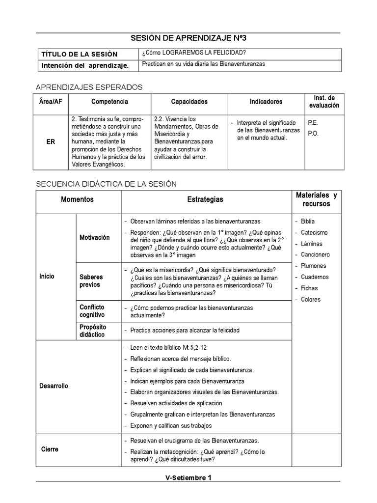 Calameo Sesion De Aprendizaje Las Bienaventuranzas