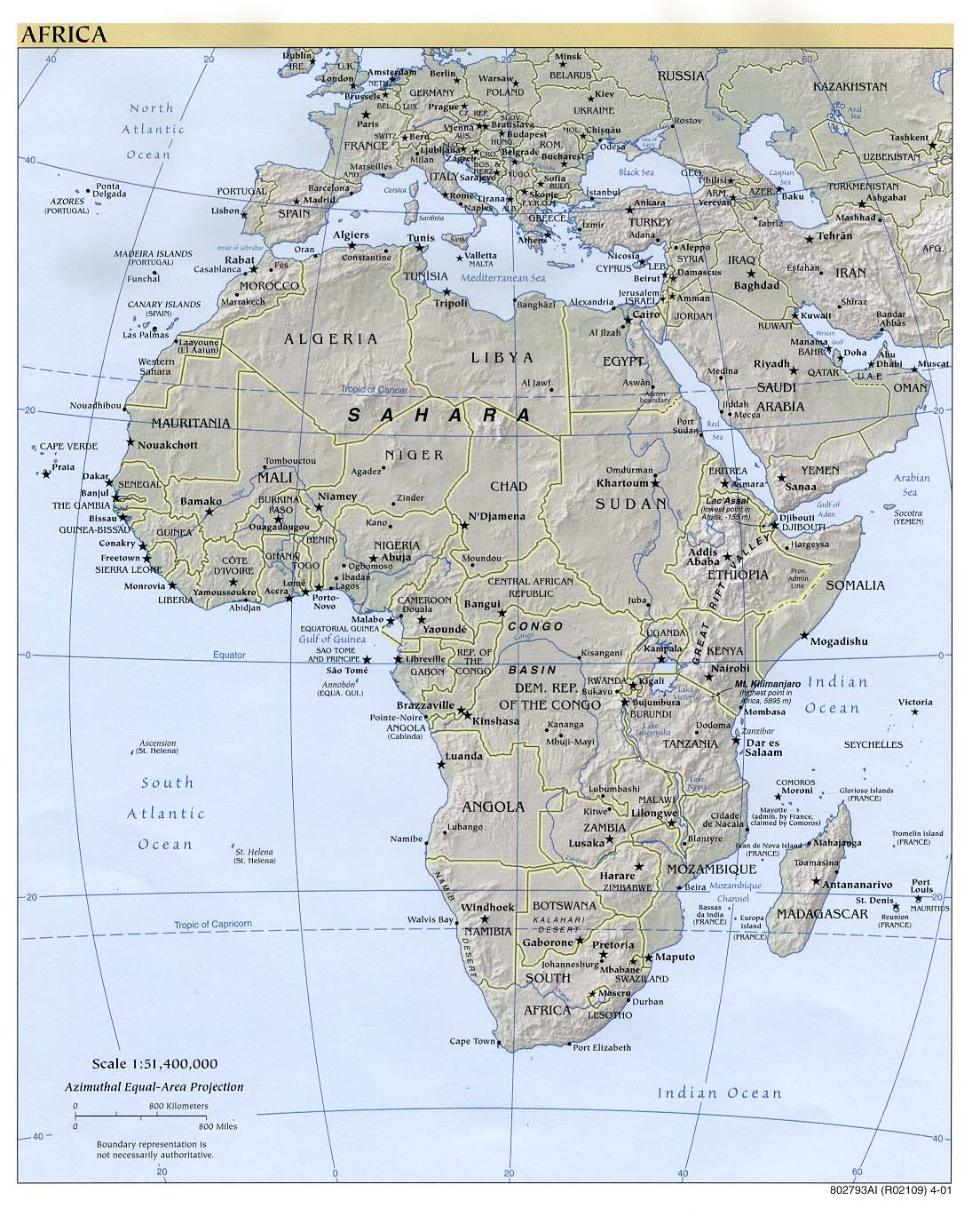 AFRICA 800 Miles 800 Kilometers 0 0 Boundary representation is not necessarily authoritative Azimuthal EqualArea Projection Scale 151,400,000 Title Africa Physical Map Created Date. What other physical features do you notice?. Other Africa maps Political map of Africa Physical map of Africa Printable maps of Africa Other pdf maps Free PDF World maps Free PDF US maps Free PDF Asia maps Free PDF Europe maps Free PDF South America maps Free PDF North America maps Free PDF Australia maps.