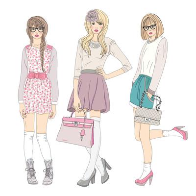 Young Fashion Girls Illustration With Teen Females Art Print Cherry Blossom Girl Art Com