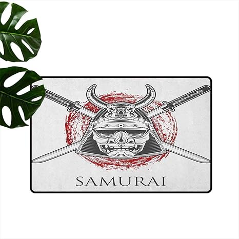 Amazon Com Felpudo Japones De Moda Mascara De Guerra De Mediana Edad Que Representa Coraje Y Honor Diseno De Insignia Cultural Duro Y Resistente Al Desgaste Color Gris Y Rojo Kitchen Dining