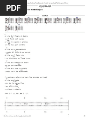 Consulta los créditos, las críticas y las canciones, y compra la edición de 1997 CD de Alicia (Expulsada Al País de Las Maravillas) en Discogs. Watch the video for Alicia (Expulsada Al País De Las Maravillas) from Enrique Bunbury's Canciones 9606 for free, and see the artwork, lyrics and similar artists. ALICIA (EXPULSADA AL PAIS DE LAS MARAVILLAS) Acordes y Letra para Guitarra, Ukulele, Bajo y Piano.