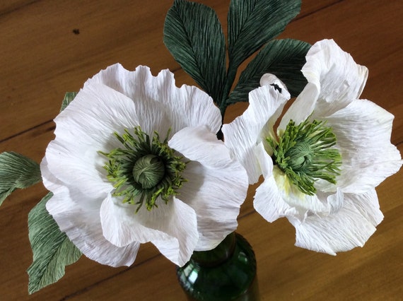 Crepe Papel Amapolas Flores De Papel Blanco Flores De Boda Etsy