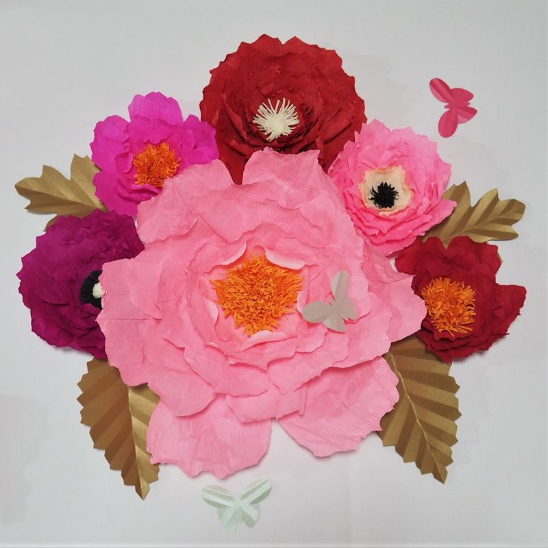 Compre Flores De Papel Crepe Telon De Fondo Flores Gigantes De Papel 6 Unids Hojas 4 Unids Mariposas 3 Unids Pared Floral Nursery Decoraciones De La Boda Decoracion Del Hogar