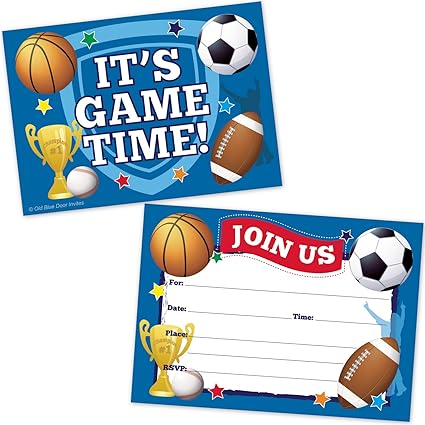 Amazon Com Deportes Fiesta De Cumpleanos Invitaciones Diseno Futbol Baloncesto Futbol Beisbol El Trofeo Count Con Sobres Toys Games