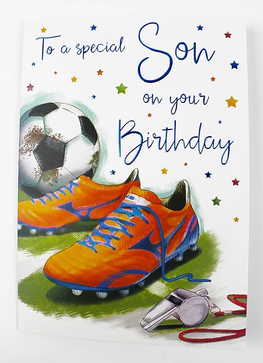 Tarjeta De Cumpleanos Para Hijo Para El Adolescente Y Hombre De Lujo Con Versos Especiales De Felicitacion Con Purpurina Y Diseno Moderno De Futbol Amazon Es Oficina Y Papeleria