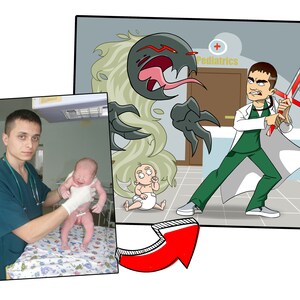 Regalo Para El Medico Retrato De Dibujos Animados Etsy