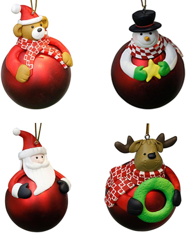 Amazon Com Cn Dragon 4 Pcs Polymer Clay Christmas Ball Cartoon Cute Christmas Tree Decorations Home Kitchen
