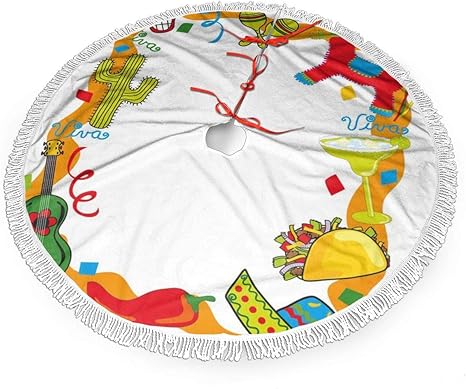 Amazon Com 36 Fringed Lace Christmas Tree Skirt With Santa Cartoon Drawing Style Mexican Pinata Taco Chili Pepper Sugar Skull Pattern Guitar Country Xmas Tree Decorations Socks Tree Skirts Holiday Ornaments Home Kitchen