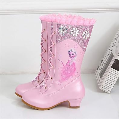 Zapatos Para Nina Botas Para Ninas Frozen Snow Queen Elsa Blue Sequin Princess Botas De Tacon Alto Vacaciones De Navidad Boda Vacaciones De Invierno Calidas Botas Antideslizantes Para Ninos Rosa Fanessy Zapatos