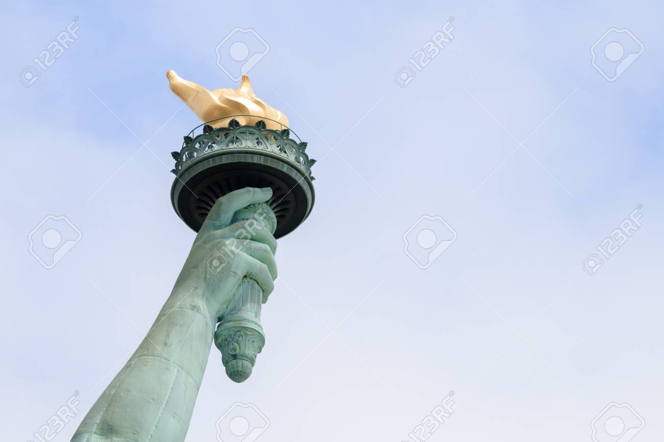 Primer Plano De La Antorcha De La Estatua De La Libertad En Un Dia Nublado Fotos Retratos Imagenes Y Fotografia De Archivo Libres De Derecho Image 4258