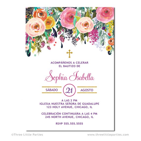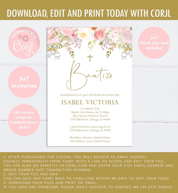 Editable Spanish Baptism Invitation Floral First Communion Invitacion Primera Comunion Bautizo Printable Digital Instant Access Edit Now By Three Little Parties Catch My Party