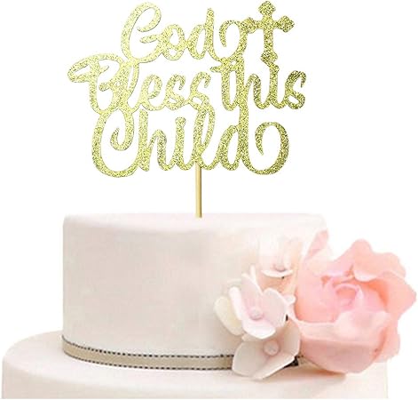 Amazon Com God Bless Decoracion Para Tartas De Bautizo Bautizo Primera Comunion Baby Shower Un Nino De Dios Decoracion Para Tartas Con Purpurina Dorada Toys Games