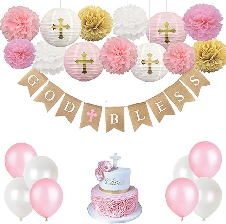 Amazon Com Decoracion De Bautizo De Crorina Para Ninas De Confirmacion De Primera Comunion Decoracion De Bautizo Decoracion De Dios Bendicion Pancarta Set Rosa Home Kitchen