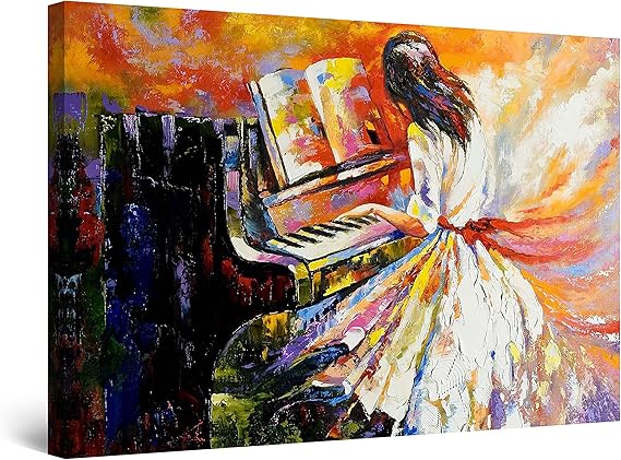 Startonight Cuadro Moderno En Lienzo Tocando El Piano Pintura Diseno Abstracto Para Salon Decoracion Grande 80 X 1 Cm Cealiserebias