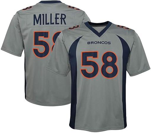 Broncos Hombres Rugby Jersey Miller 58 Hombres Camisetas De Futbol Americano Camiseta Bordado Superior Sudadera Deportiva Corta Estudiante Universitario Nino Juventud Grey S 160 175 Amazon Es Deportes Y Aire Libre