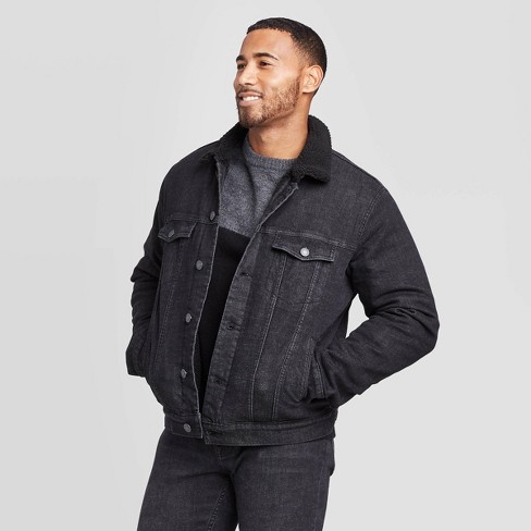 Men S Sherpa Lined Denim Trucker Jacket Goodfellow Co Black M Target