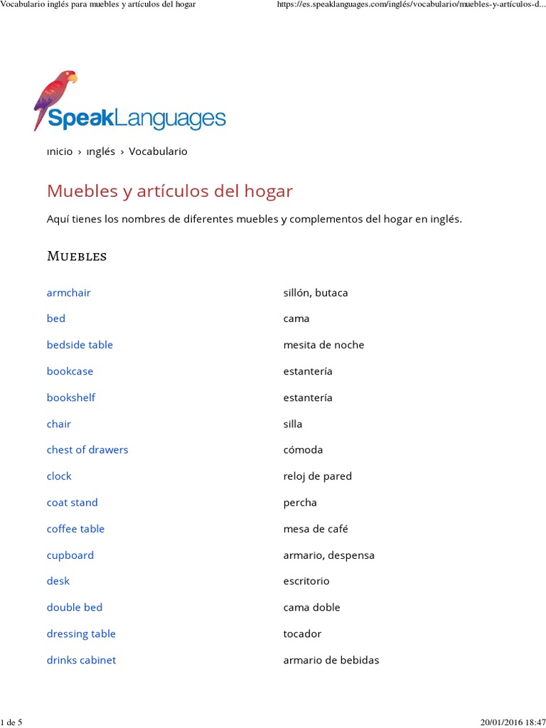 Vocabulario Ingles Para Muebles Y Articulos Del Hogar Mueble Artes Decorativas