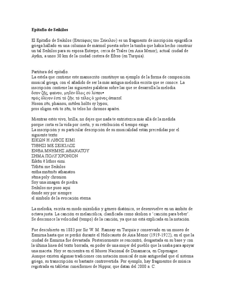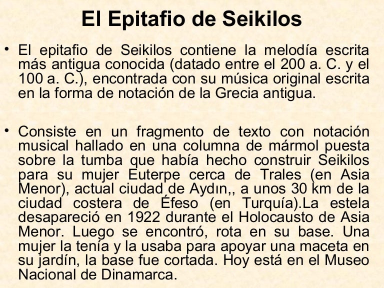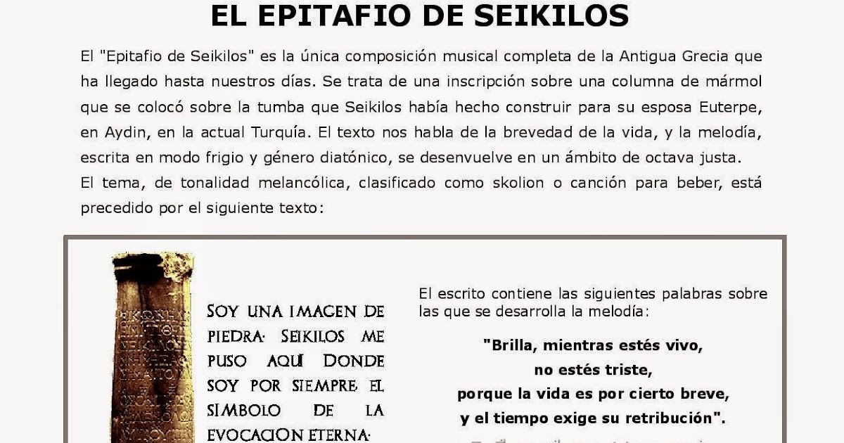 Epitafio de seikilos. Epitafio de Seikilos (siglo I d. Linguagem Artística Videoaula Slides Aula 04 - A Arte Não se Apaga. El sistema de notación musical griego se perdió al pasar a la Edad Media.