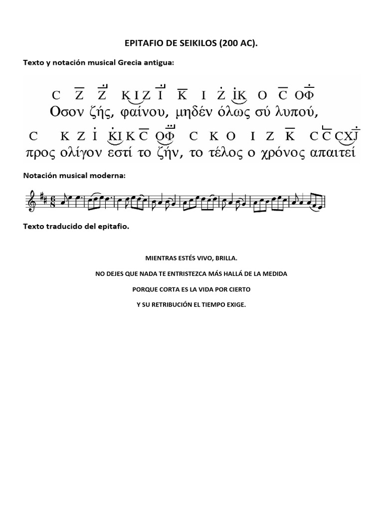 Epitafio De Seikilos 0 Ac Texto Y Notacion Musical Grecia Antigua