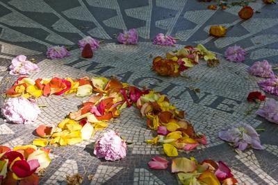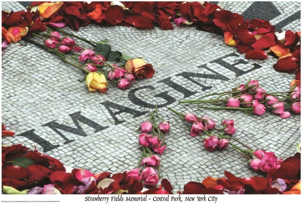 NEW YORK — In Central Park’s Strawberry Fields, John Lennon lives forever © TIMOTHY A CLARY/AFP/Getty Images North America/TNS Pictures are seen on a monument as mourners gather on the 40th. Our first stop was Strawberry Fields and to the “Imagine” Mosaic memorial designated a quiet zone in the park and our tour guides respected that Strawberry Fields has also been endorsed as a Garden of Peace by 121 countries, whose names appear on a bronze plaque close by. The Central Park memorial was designed by Bruce Kelly, the chief landscape architect for the Central Park Conservancy Strawberry Fields was dedicated on what would have been Lennon's 45th birthday, October 9, 1985, by New York Mayor Ed Koch and Lennon's widow Yoko Ono, who had underwritten the project.