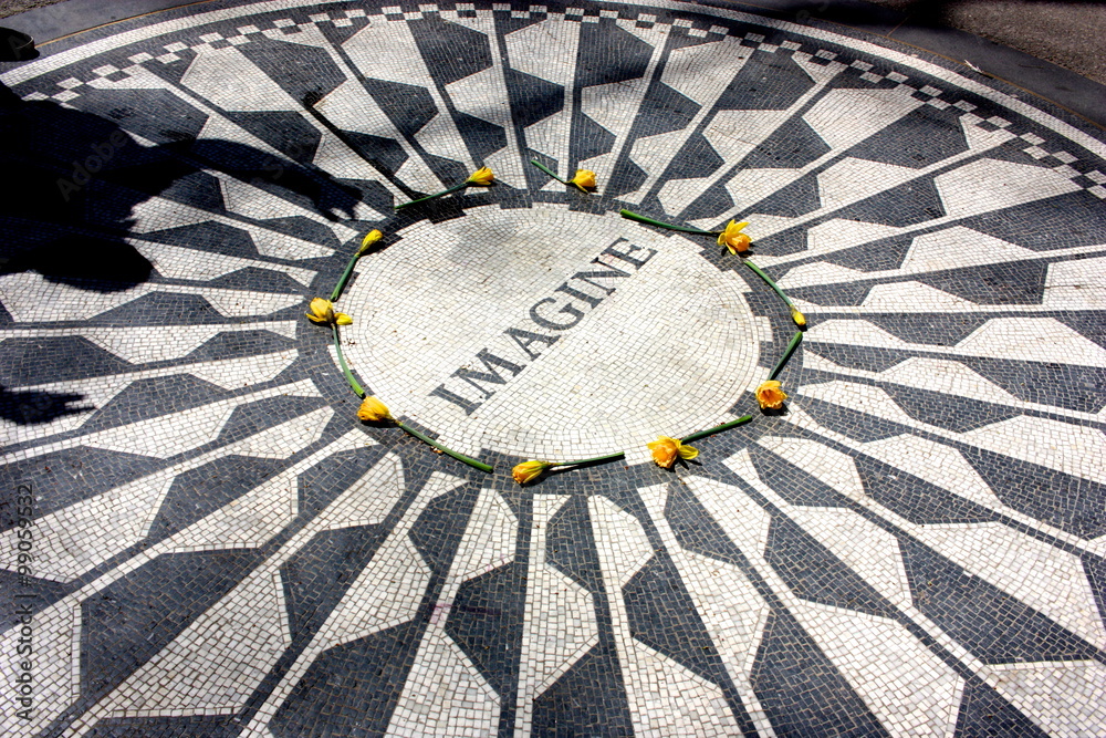 Strawberry Fields in Central Park, New York City New York Central Park is a National Historic Landmark since 1963 and is the most visited urban park in the John Lennon Imagine Memorial NYC John Lennon Imagine memorial in Central Park, New York City with a red rose in the center. And the part of Central Park that gets the most visitors per acre (yes, that’s how these things are measured) is Strawberry Fields, the memorial to John Lennon and peace It was Lennon’s widow, Yoko Ono, who came up with the idea of creating a peace garden across the street from the Central Park West sidewalk where the former Beatle was shot in 1980. This area is designated as a quiet zone in Central Park Strawberry Fields officially reopened on October 9, 1985, the 45th anniversary of John Lennon's birth Annually, on this date, as well as on the anniversary of John Lennon's death, visitors and fans from all over the globe flock to Strawberry Fields to pay homage to this Beatles' legacy.