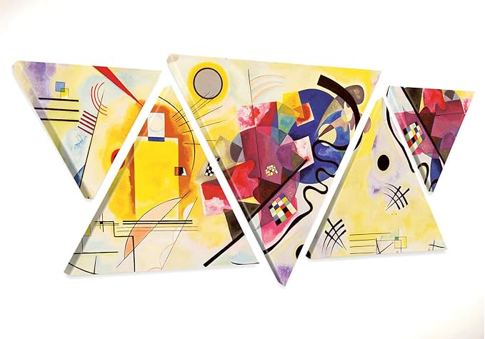 Giallobus Cuadro Triangular Multipanel Kandinsky Marco Abstracto Amarillo Rojo Azul Lienzos Modernos 180 X 70 Cm Kelvodullach