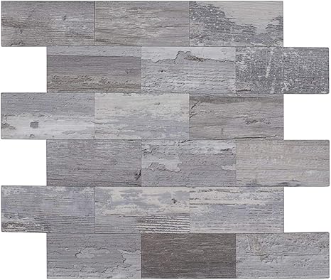 Amazon Com Art3d Peel And Stick Backsplashes Wall Tile Gray Wood Grain 10pcs Of 13 5x11 4inches For Kitchen Backsplash Bathroom Decoration Fireplace And Stair Riser Decal Made Of Pvc Composite Laminate Home Kitchen