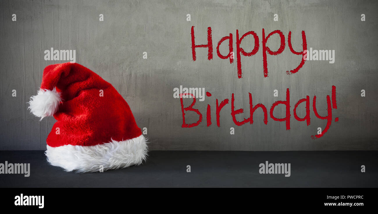Gorro De Papa Noel Texto Feliz Cumpleanos Fondo Gris Fotografia De Stock Alamy