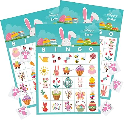 Amazon Com Miss Fantasy Easter Bingo Game Easter Party Games Bunny Bingo Cards Game For Kids Egg Hunt Activities Good For 24 Players Easter Game Toys Games