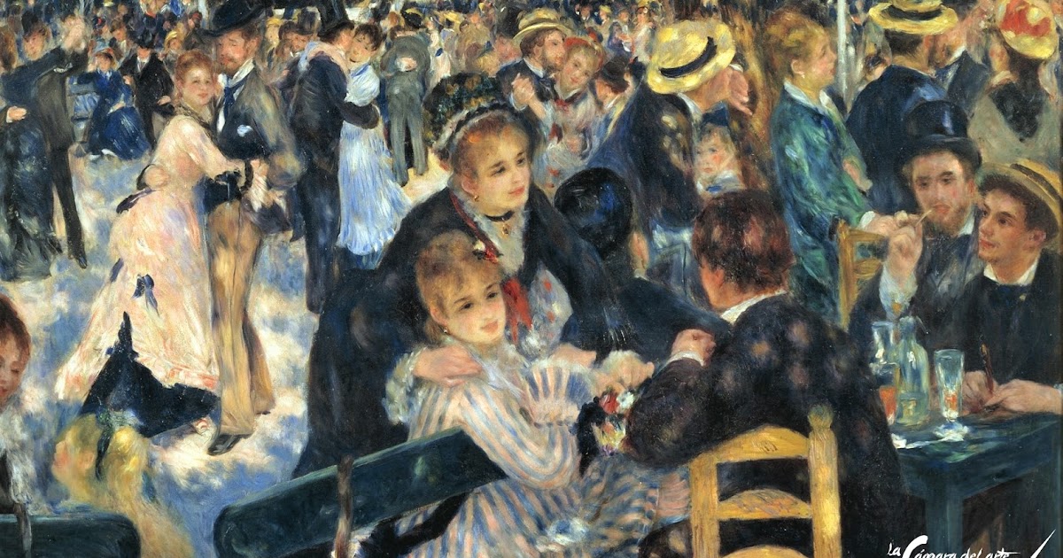 This painting is doubtless Renoir's most important work of the mid 1870's and was shown at the Impressionist exhibition in 1877 Though some of his friends appear in the picture, Renoir's main aim was to convey the vivacious and joyful atmosphere of this popular dance garden on the Butte MontmartreThe study of the moving crowd, bathed in natural and artificial light, is handled using vibrant. Baile en el Moulin de la Galette (en francés Bal au moulin de la Galette) es una de las obras más célebres del pintor impresionista PierreAuguste Renoir, que se conserva en el Museo de Orsay en París, siendo uno de los cuadros más emblemáticos del museo Fue expuesto en la III exposición de los impresionistas (1877). Le Moulin de la Galette es un molino de viento ubicado en el corazón de Montmartre, donde corona la colina más famosa de París, Francia Este molino no era el único de su especie en la Francia del siglo XVII El lugar era un municipio de viñedos, trigales y pastos que luego se anexó como barrio a la capital Con los años y después de la Revolución francesa, el Moulin de la Galette se.