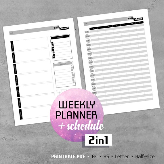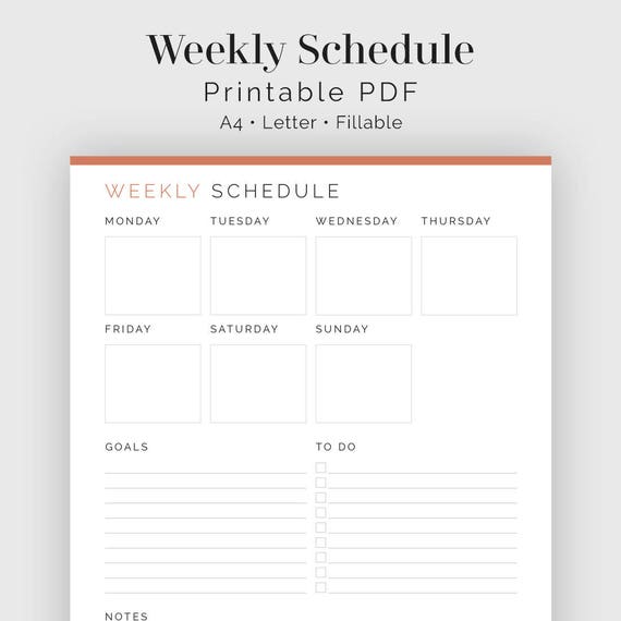 Horario Semanal Para Agenda Formato Para Imprimir Horario Etsy