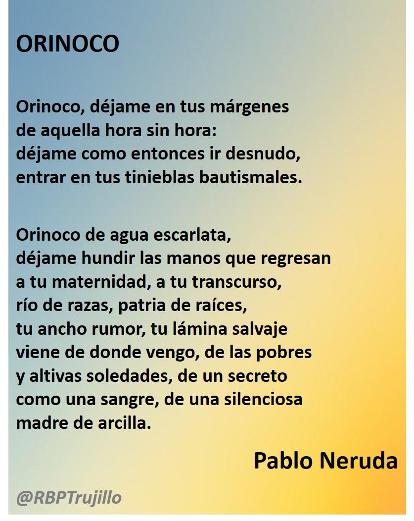 Red Bibliotecas Truj على تويتر Poema Pablo Neruda Tambien Le Canto A Venezuela Le Canto Al Orinoco Nuestro Gracias Poeta Http T Co K2anjnmfvq