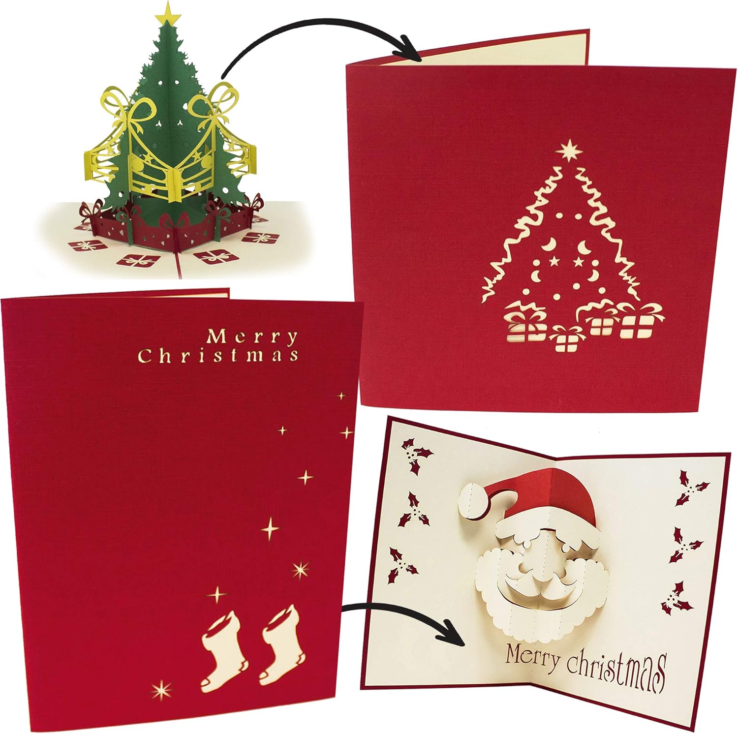 Tarjetas De Felicitacion Papa Noel Colores Festivos Papel Resistente Tarjeta De Felicitacion De Navidad Personalizada 2 Piezas Tarjetas De Navidad 3d Pop Up Con Sobres Arbol De Navidad Hecho A Mano Oficina Y