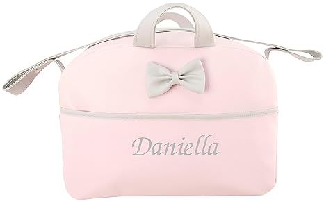 Bolso carro bebé personalizado Panera rosa bebé, muy resistente, plastificada por el exterior, mate, con lazos de raso en ambos extremos Bolsillo exterior Interior de tela, con compartimentos elásticos, para guardar los biberones Cierre con cremallera, corchetes de las asas muy consistentes, aptas para cualquier tipo de carro o. Bolso maternal para bebé Gamberritos Precioso bolso maternal para bebé Gamberritos, confeccionado en suave tela minky con topitos y tacto aterciopelado, y luce un precioso oso y un corazón, bordado con tela aplicadaLleva el cierre en forma de cremallera, dos asas para colgar al hombro y una tira ancha y larga para colgar en el carro de paseo. Bolso maternal para bebé Precioso bolso de carro para bebé en color gris con lunares en color azul celeste o rosa, con cierre en forma de cremallera, dos asas para cogerlo y una tira larga para colgar en el carro Lleva un bolsillo grande exterior rematado por picunela Va forrado por dentro, con dos bolsillos interiores Está confeccionado en polipiel de fácil limpieza.