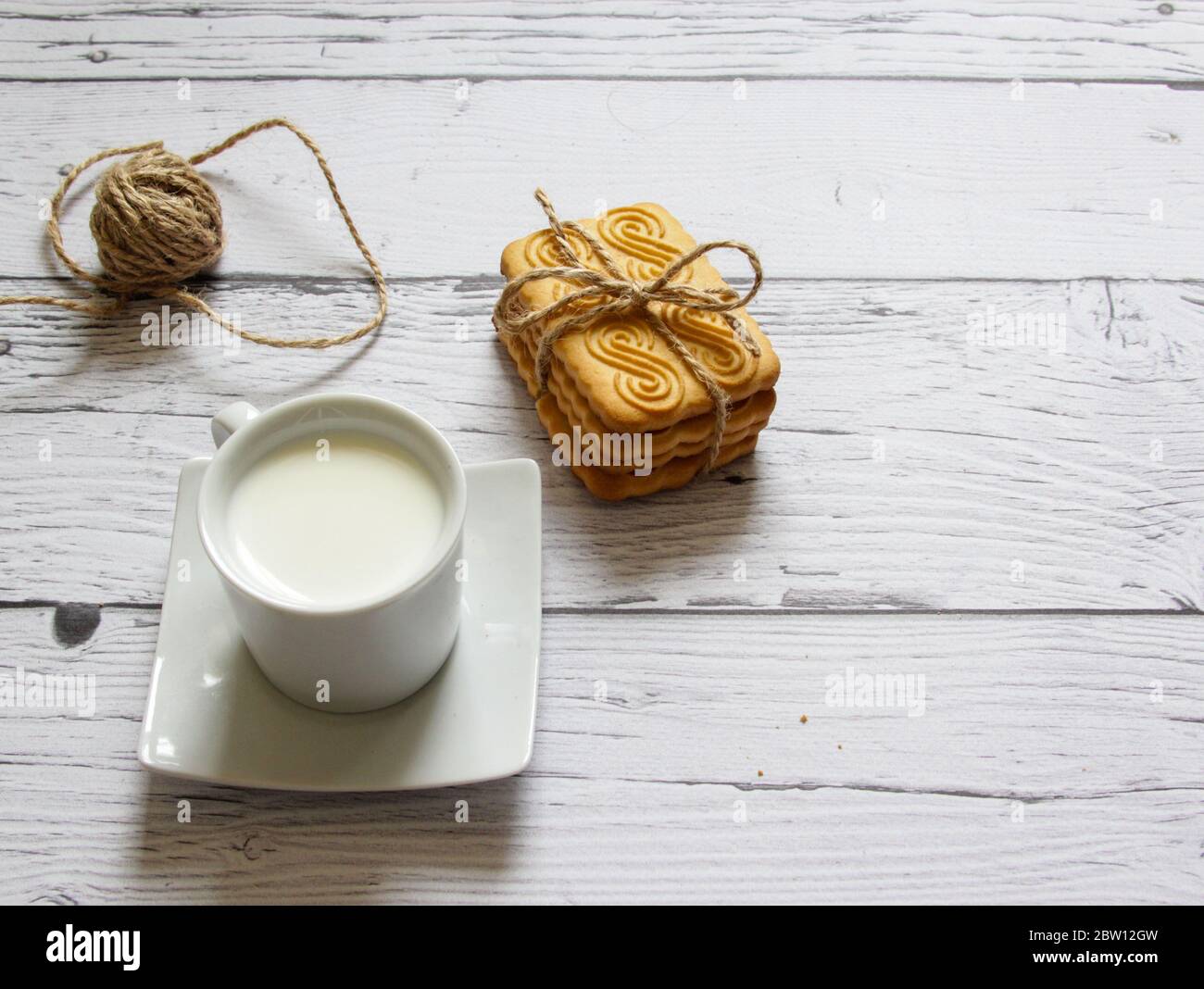Cookies Tied With A Rope And A Cup Of Milk Healthy Breakfast Stock Photo Alamy