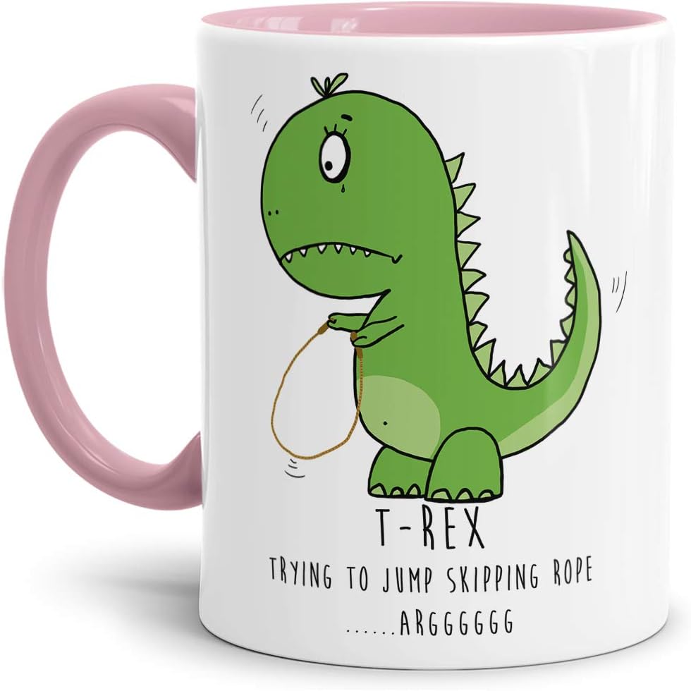 Dinosaur Cup Trying To Jumo Skipping Rope Gift Item Love Cup Funny Couple Love Coffee Cup Tea Cup Dinosaur Dinosaur Interior Handle Pink Amazon De Kuche Haushalt