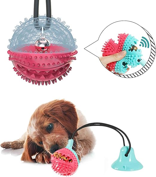 Pink Namsan Dog Chew Toy Smart Dog Molar Bite Toys Dog Chew Ball With Suction Cup And Rope Multi Function Dogs Molar Balls Interactive Pet Toy With Bell Pet Supplies Dogs