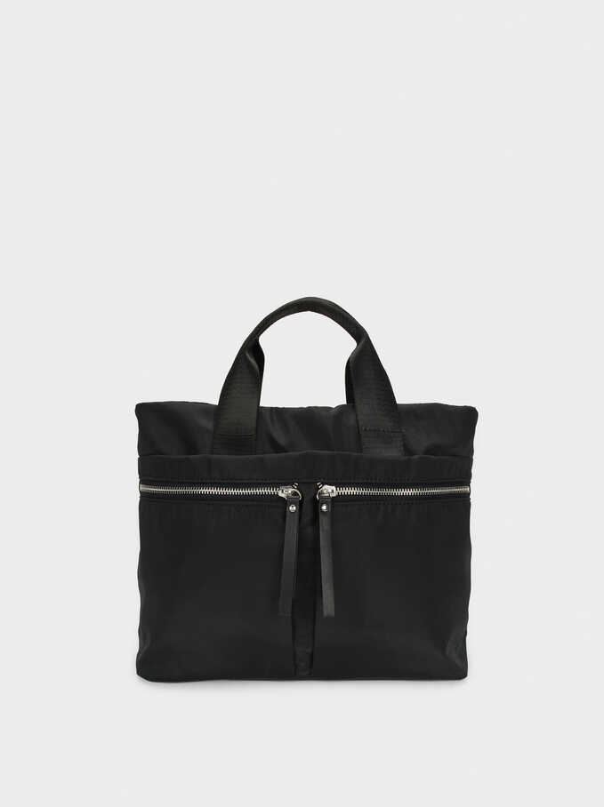 Nylon Tote Bag With Pockets Black Woman Shoppers Parfois Com
