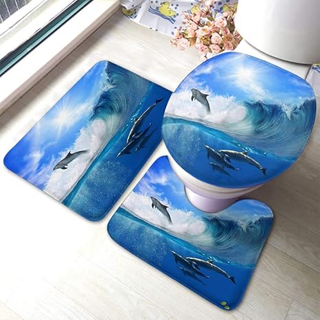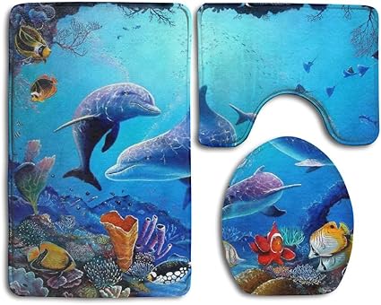 Amazon Com Juego De 3 Alfombrillas De Bano Con Diseno De Delfin Y Mosaico Con Luz Solar Y Delfines Bajo El Agua Antideslizantes Color Azul Home Kitchen