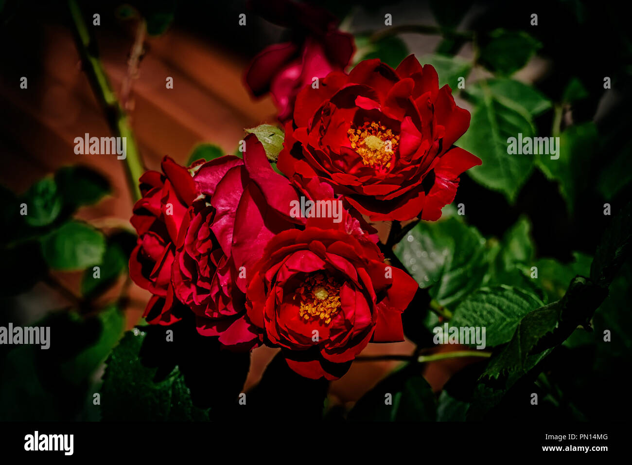 Blood Red Bush Roses In Dark Colors Stock Photo Alamy